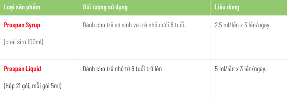 Prospan dành cho trẻ có 2 loại sản phẩm với liều dùng tương ứng như sau: