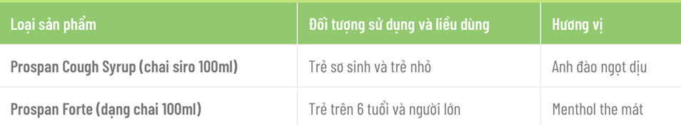 Prospan có 2 loại siro dành cho trẻ em. Loại sản phẩm dành cho trẻ sơ sinh và trẻ nhỏ là Prospan Cough Syrup. Với trẻ hơn 6 tuổi có thể tham khảo thêm loại Prospan Forte.