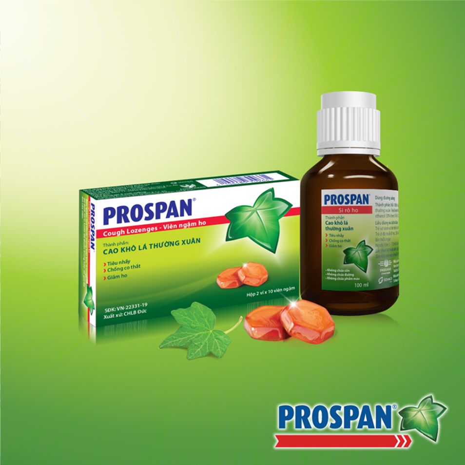 Bạn có thể tham khảo sử dụng thuốc ho Prospan nhập khẩu từ Đức. Với thành phần chính chiết xuất từ cao khô lá thường xuân, Prospan giúp trị ho với 3 cơ chế tác động: Tiêu nhầy – Chống co thắt – Giảm ho. Sản phẩm cũng đáp ứng tiêu chí 3 KHÔNG: Không chứa cồn – Không chứa đường – Không chất phẩm màu.