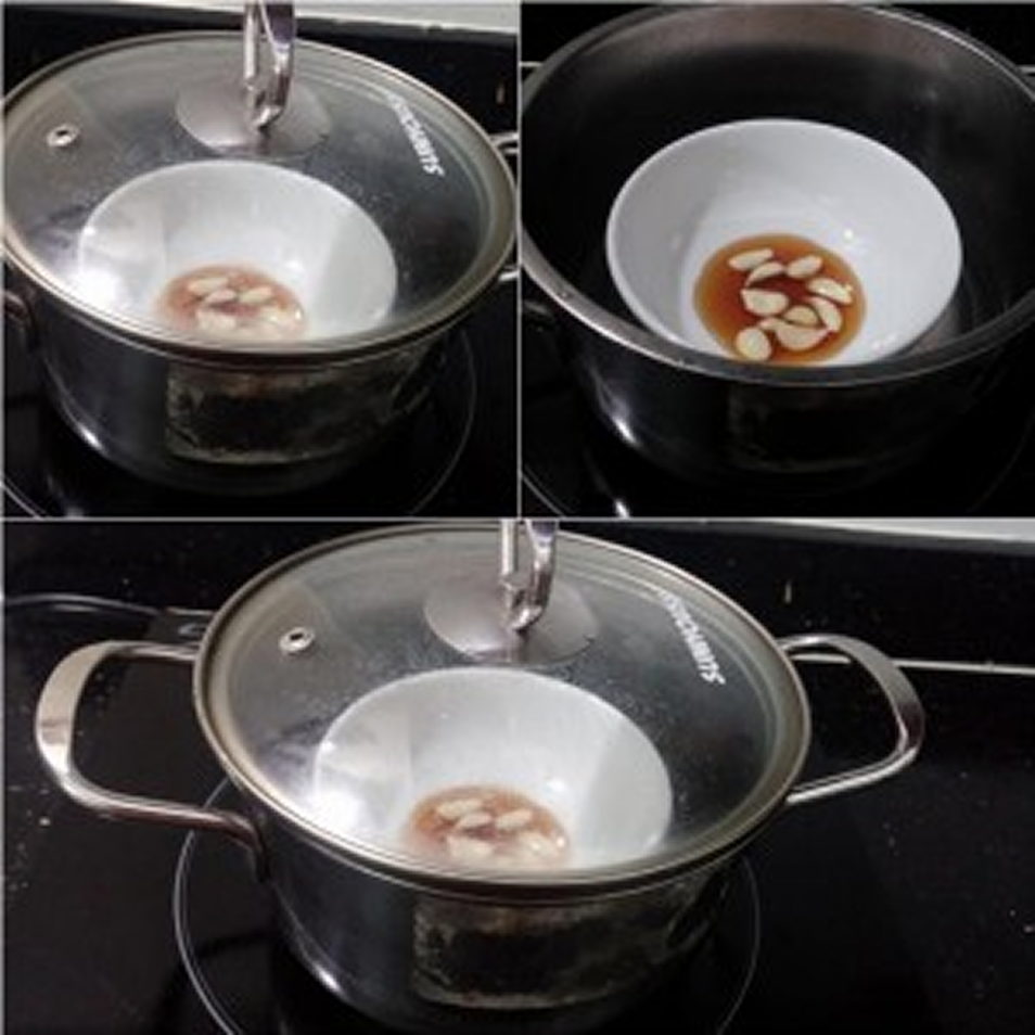 – Lấy vài tép tỏi, bóc sạch vỏ, cho vào bát, có thể giã nát hoặc để nguyên như vậy.