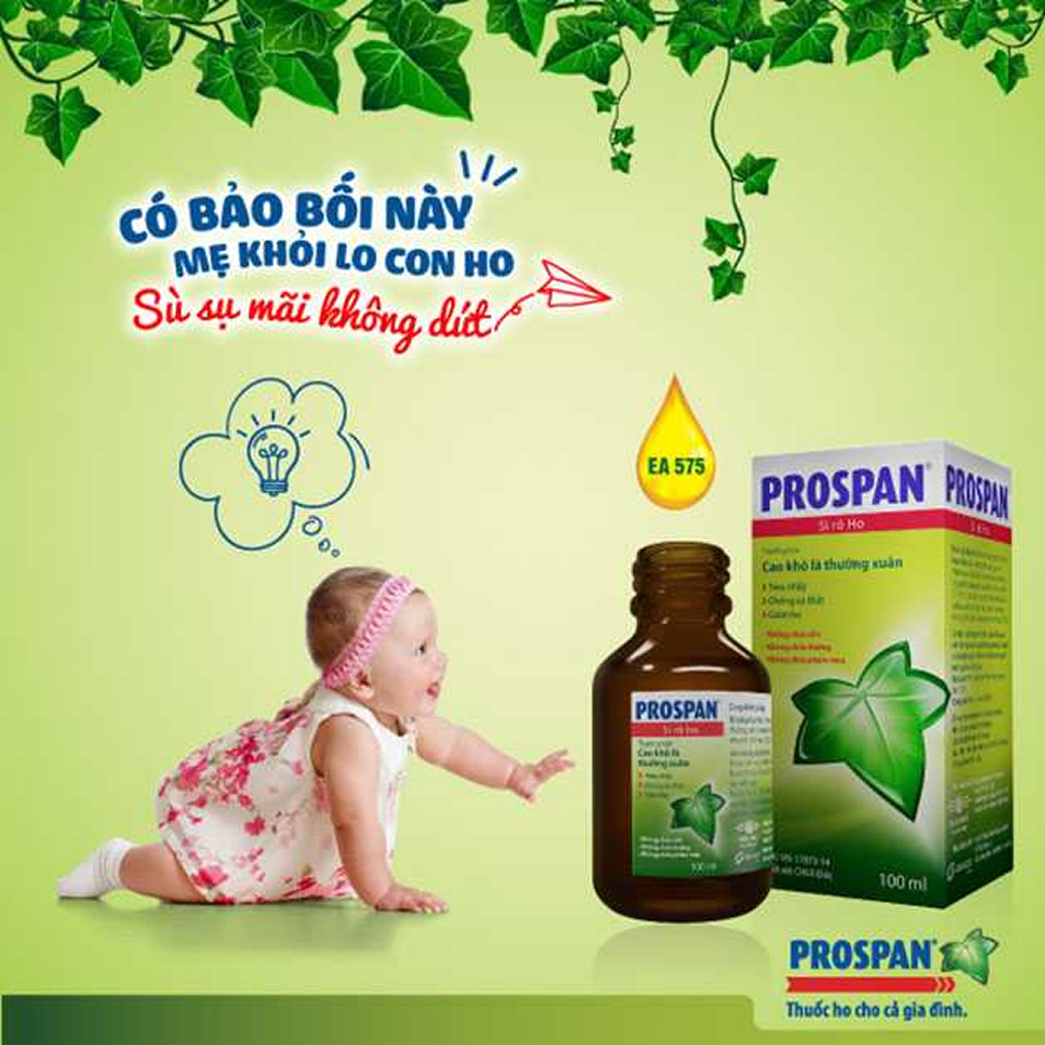 Thuốc ho Prospan chứa thành phần chính lành tính là dịch chiết độc quyền EA575 từ lá thường xuân, được Cơ quan sáng chế châu Âu (EPO) bảo hộ. GS. Häberlein, Đại học Bonn – CHLB Đức cùng nhóm nghiên cứu đã xác định và chứng minh cơ chế tác dụng an toàn của dịch chiết EA575™ có trong Prospan. Khác với các loại thuốc hóa dược ức chế cơn ho tạm thời, Prospan không chỉ trị ho mà còn điều trị nguyên nhân gây ho, không làm mất phản xạ ho tự nhiên của cơ thể. Đây là cách trị ho an toàn, triệt để.