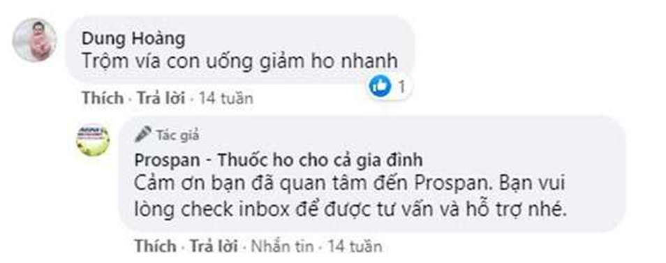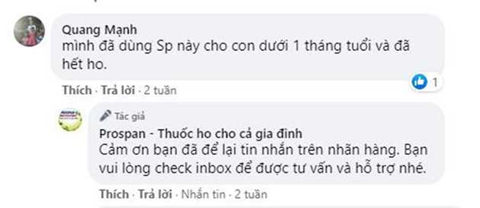 Nhờ cơ chế và hiệu quả trị ho vượt trội, siro Prospan được tin dùng rộng rãi tại 102 quốc gia, trong đó có Việt Nam. Nhiều bậc phụ huynh đã sử dụng thuốc ho Prospan cho bé và gửi phản hồi tốt về fanpage chính hãng.