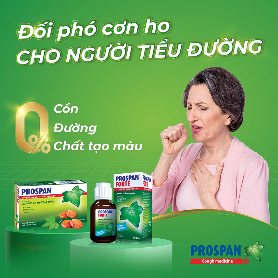 Với những người mắc bệnh tiểu đường, khi sử dụng bất cứ sản phẩm điều trị và chăm sóc sức khỏe nào đều phải cân nhắc và lựa chọn cẩn thận để không ảnh hưởng đến mức đường máu. Sử dụng viên ngậm ho Prospan và tuân thủ điều trị theo chỉ dẫn của bác sĩ kết hợp với thực hiện chế độ dinh dưỡng và tập luyện phù hợp với người tiểu đường sẽ giúp giảm ho bệnh nhân giảm ho hiệu quả.