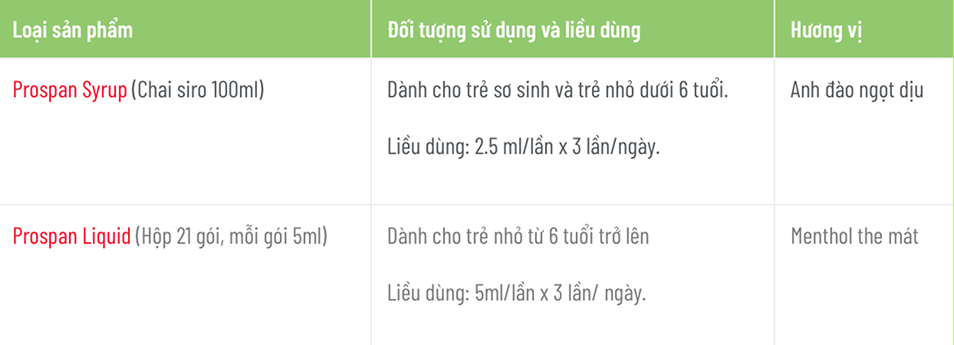 - Loại sản phẩm: Có 2 loại Prospan dành cho trẻ