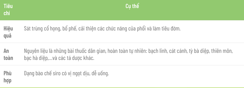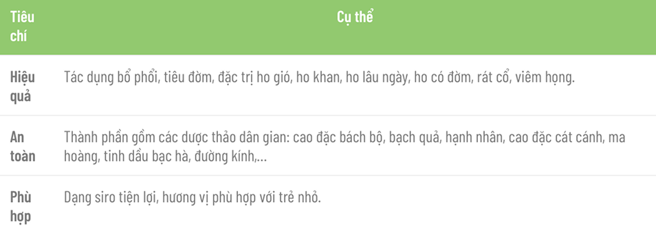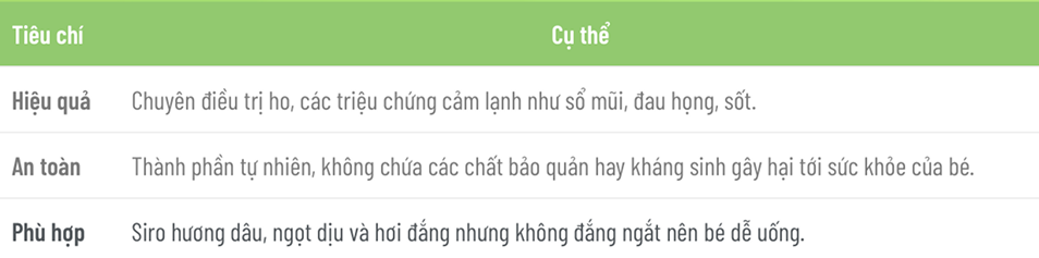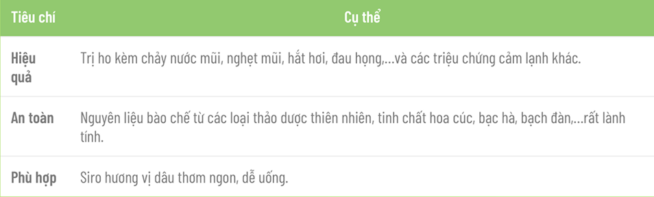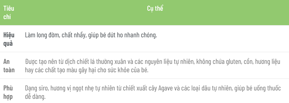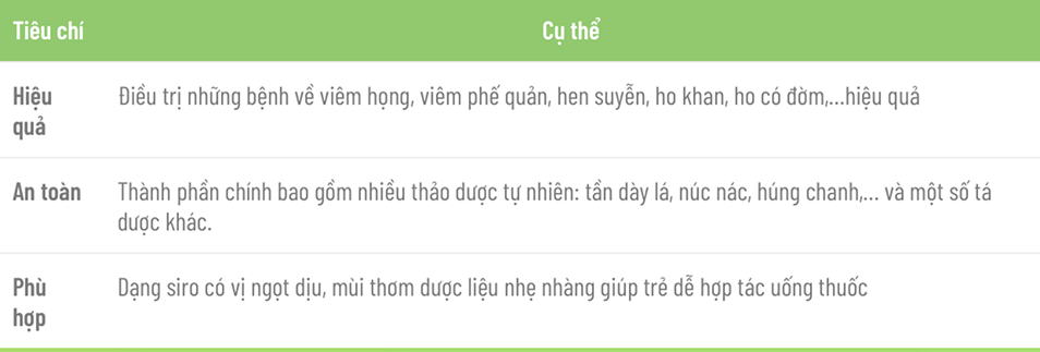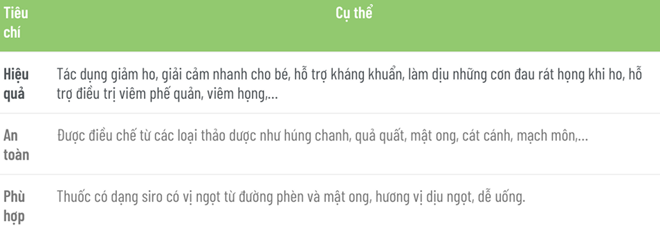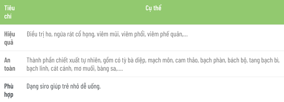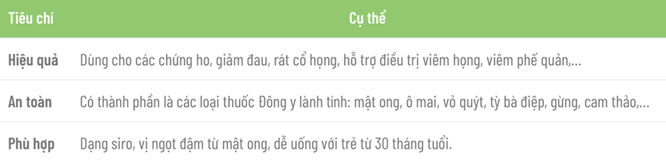14. Tiêu chí đánh giá thuốc ho trẻ em tốt