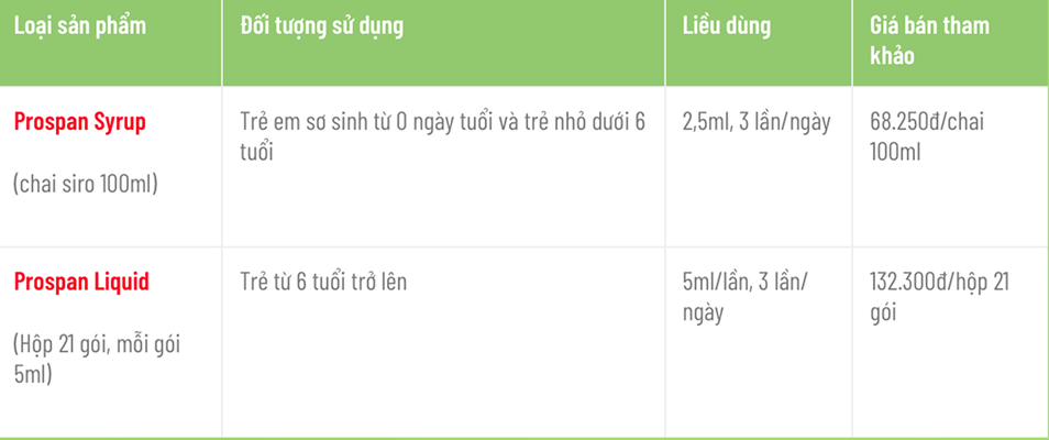 Prospan có dạng bào chế là dạng siro lỏng kèm 2 loại sản phẩm dành cho trẻ em: