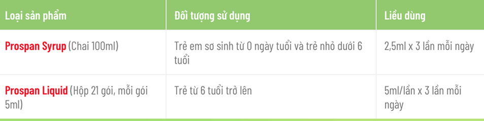 - Tiêu chí “3 không” không cồn – không đường – không chất tạo màu giúp Prospan “kết bạn” với nhiều nhóm tuổi ở trẻ, đặc biệt an toàn cho cả trẻ sơ sinh từ 0 ngày tuổi.