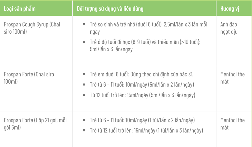 Prospan có tác dụng điều trị viêm đường hô hấp cấp có kèm ho hoặc viêm phế quản mãn tính ở trẻ em, với 2 loại là Prospan Syrup và Prospan Forte.