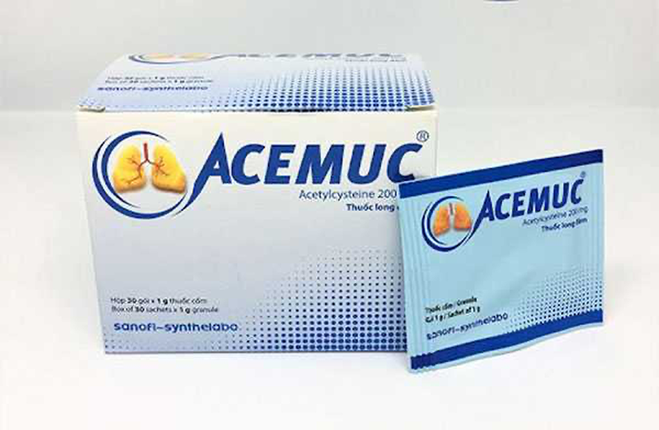 Thuốc ho Acemuc có hoạt chất chính là acetylcystein giúp long đờm, tiêu nhầy.