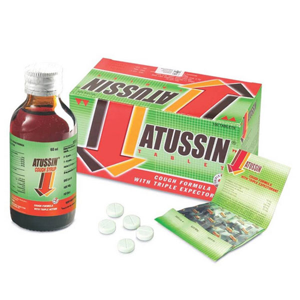 Thuốc ho Atussin dạng siro 60ml và dạng viên nén.