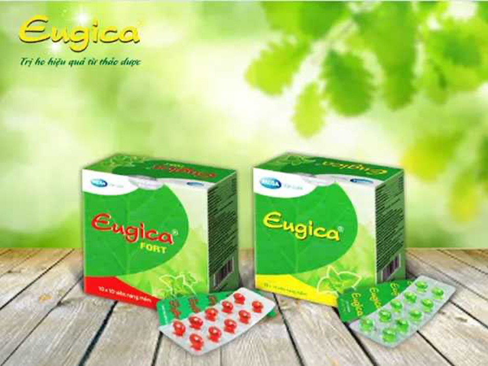 - Công dụng: Eugica giúp điều trị các triệu chứng ho, đau họng, sổ mũi và cảm cúm.