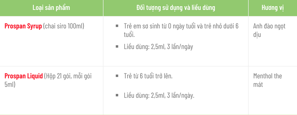 • Lưu ý: Prospan có chứa sorbitol gây nhuận tràng, chống chỉ định cho trường hợp bất dung nạp fructose.