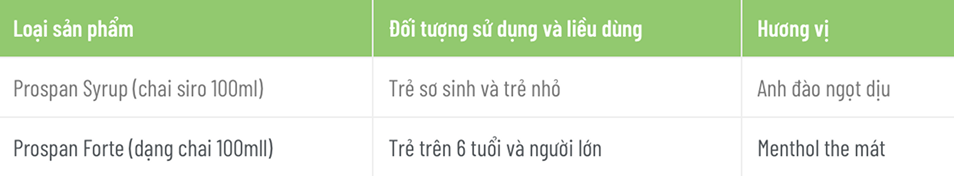 Thành phần lá thường xuân với công dụng giúp tiêu nhầy, chống co thắt và giảm ho cho trẻ. Hiện có 2 loại Prospan dành cho trẻ. Sản phẩm Prospan Syrup và Prospan Forte, so sánh 2 sản phẩm cho bé mà mẹ có thể lựa chọn cho phù hợp.