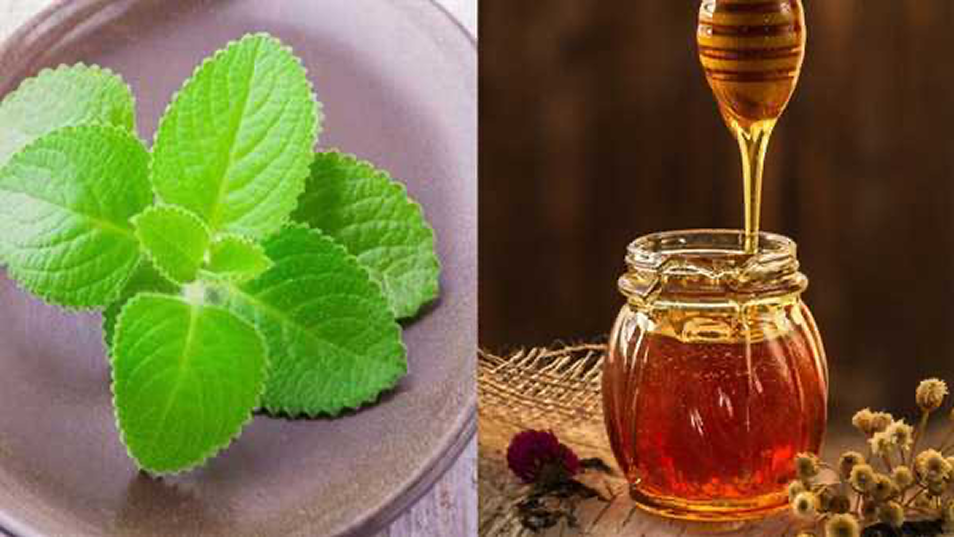 Nguyên liệu: 3-4 lá húng chanh, 2-4 thìa mật ong.