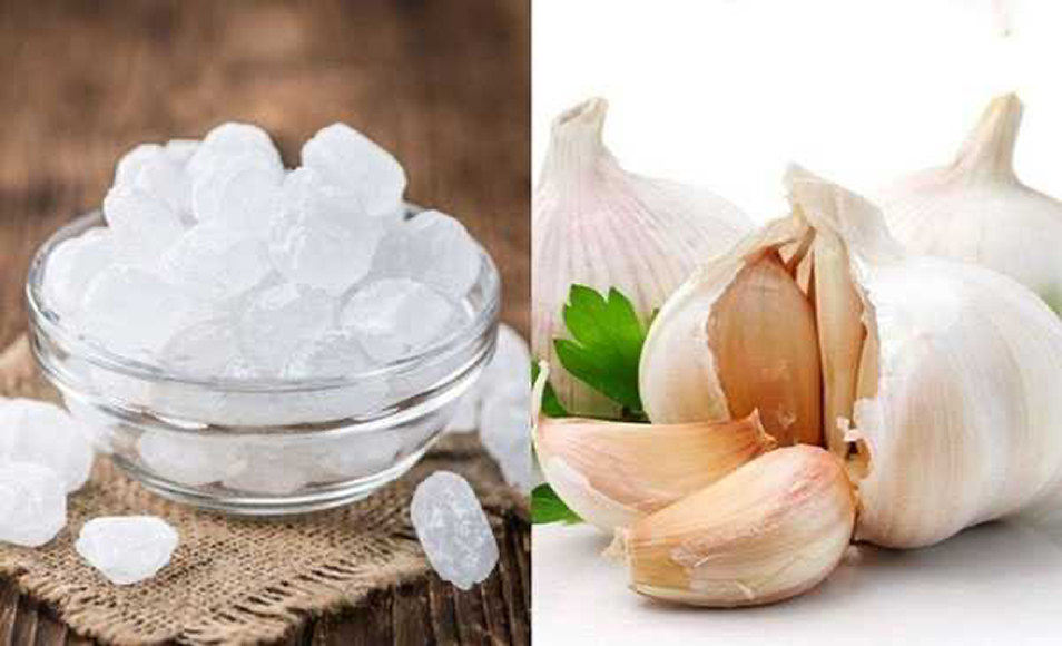 Dùng 2 – 3 tép tỏi bóc vỏ, đập dập, cho vào bát cùng 2 viên đường phèn rồi đem chưng cách thủy khoảng 20 phút.